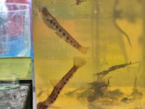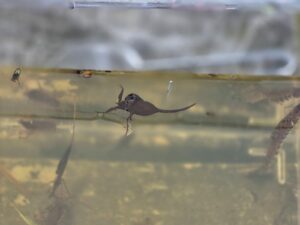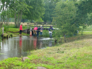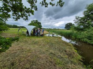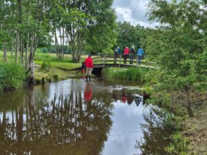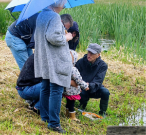 Smeerling 7 juni 2025 – Wie zouden er nu komen om waterdieren te gaan vangen, ze te onderzoeken en op naam te brengen op een dag met de voorspelling dat het zou gaan regenen? En het regende zeker, maar de 15 kinderen en 20 (groot)ouders lieten zich niet afschrikken. Enthousiast pakten de jongsten de netten ─ soms te zwaar voor hun leeftijd ─ en zwierden ze door het water. Het snelstromende laaglandbeekje, dat uitkomt op de Ruiten Aa, had heel wat voor hen in petto!
