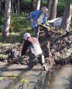 Begin januari is er in het bosplantsoen wat werk verricht. Daarna was het enkele weken te nat om aan het werk te gaan, maar eind januari hebben we toch wel weer wat kunnen doen. Lex, Boukje, Anne en Hennie hielden zich bezig met het wegharken van blad van het droge deel van het natte hooiland en het verwijderen van overtollige begroeiing op het rivierduin, bramen en veel los hout.