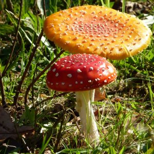 Een bekende paddenstoel, die je bij berken en ook wel bij eiken, beuken en tamme kastanje kunt vinden, is de vliegenzwam: ’rood met witten stippen’. Deze paddenstoel leeft in symbiose met deze bomen. Dat betekent dat zowel de boom als de paddenstoel voordeel van elkaar hebben.
