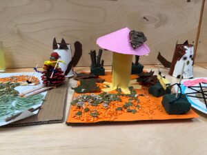 Ook zondagmiddag 12 oktober werd er weer volop geknutseld bij IVN. Deze keer vierde het herfst thema hoogtij. De Roode Schuur was goed gevuld met enthousiaste kinderen en hun ouders/begeleiders, druk in de weer met diverse natuurlijke materialen en de nodige lijm en andere knutselspullen. Aan het eind gingen prachtige eekhoorns, spinnenwebben en kabouter huisjes mee naar huis.