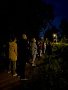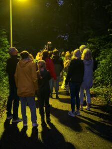 Op zaterdag 30 augustus verzamelde zich een grote groep mensen voor de vleermuisexcursie. De avond werd ingeleid met een korte presentatie over vleermuizen en hoe hun sociale leven er uitziet. Dat het eigenlijk schattige en zeer nuttige diertjes zijn die we moeten beschermen. Vervolgens werd in het kort verteld hoe vleermuizendetectors de zeer hoge geluiden van de vleermuizen oppikken en vertalen naar een voor ons hoorbaar signaal. Onderweg hoorden we de gewone dwergvleermuis en laatvliegers. Met de warmtecamera die mee was hebben we meerdere vleermuizen gezien die te ver waren om te horen. Zo zagen we watervleermuizen net boven het wateroppervlak. Met meer kennis en hopelijk meer liefde voor de vleermuis gingen de deelnemers weer naar huis.