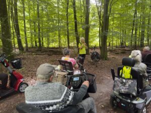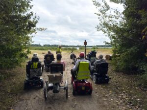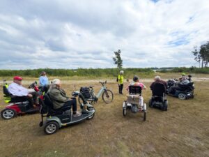 Zondagmiddag 31 augustus vertrok voor de eerste keer een groepje scootmobielen vanaf de Roode Schuur voor een rit door de natuur. De route voerde deels over het Natuurpad en naar de Voorlanden. Onderweg werd regelmatig gestopt, waar een natuurgids van IVN het gezelschap geboeid hield met verhalen over de mooie natuur van Zeewolde. Na afloop was iedereen het eens, zo’n mooie tocht door de natuur is zeker voor herhaling vatbaar.
