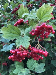 De bessen van de Gelderse Roos zijn dus niet giftig voor vogels, maar ze zijn niet erg favoriet. Ze hangen vaak tot ver in de winter aan de struiken. Pas als al het andere voedsel op is, eten de vogels van deze bessen. In sommige winters komen daar vogels uit het hoge noorden op af zoals de Pestvogel. Het is een bijzondere verschijning met zijn kuifje en mooie kleuren.