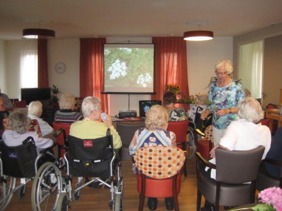 Al heel wat keren zijn leden van de werkgroep al op stap geweest. Het is verrassend te merken hoeveel welbevinden deze bezoeken oproepen. ‘s Winters wordt er anijsmelk of chocolademelk gedronken en kan er bijvoorbeeld een grote stronk boerenkool bewonderd worden. Het voorjaar biedt ook veel mogelijkheden, zoals kiemende bonen laten zien en die achterlaten evenals een pot met kikkerdril. De ouderen kunnen dan zien hoe zich dat allemaal verder gaat ontwikkelen. Veel aandacht wordt er besteed aan het ophalen van herinneringen aan vroeger. Dementerende ouderen zie je dan helemaal opleven.
