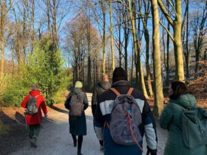 Hier is het voor de deelnemers duidelijk te beleven hoe bewegen in het groen rust geeft en het gesprek ontspannen en levendiger maakt.