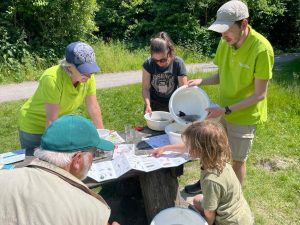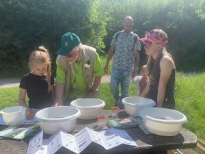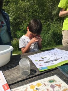 Met loeppotjes en zoekkaarten waren kinderen én ouders druk aan het turen naar wat daar allemaal uit het water werd opgevist. Sommige diertjes zijn schattig, sommige soms wat eng als je ze door een vergrootglas ziet. Maar die worden straks wel prachtige libellen…..