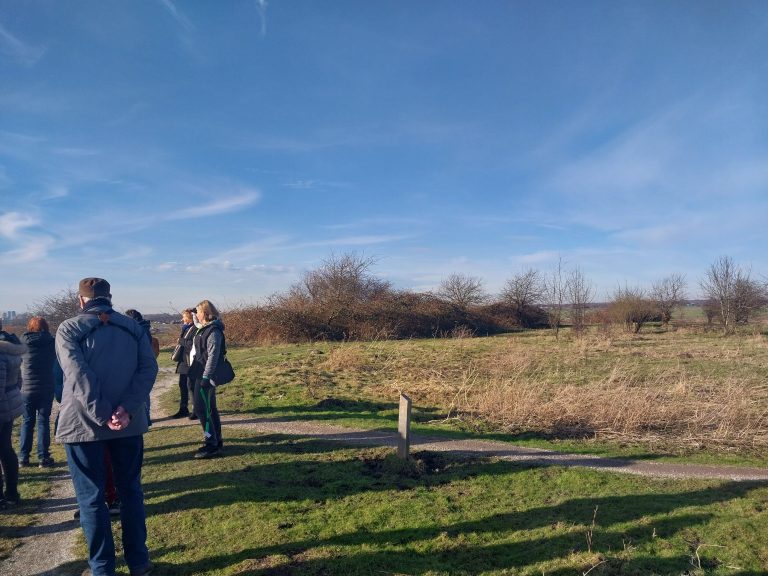 In een winterse natuur en tegelijkertijd in een schitterende zon was het heerlijk lopen door de frisse buitenlucht! We hebben 2 van de 4 heuvels van dit gebied beklommen en genoten van het prachtige vergezicht dat je in dit park hebt. Het Buytenpark is zeker een unieke plek bij Zoetermeer en in het Groene hart. Je kunt er bijvoorbeeld heel goed de Nieuwe Driemanspolder zien, een gebied voor waterberging dat met name grote natuurwaarde heeft voor watervogels. Met verrekijkers zagen we in de draslandjes onderaan de heuvels een prachtige zilverreiger, een bergeend. In de bomen zongen groenlingen en putters, dit park is een heerlijke plek voor veel zangvogels en roofvogels.