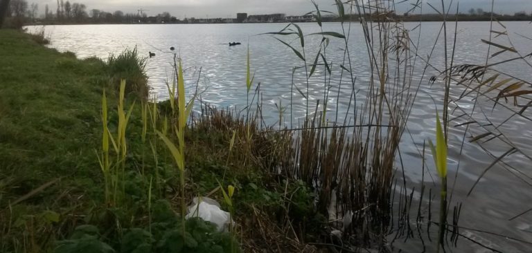 Veel plastic en zwerfafval belandt in het water. In het voorjaar, wanneer het riet nog laag is, zie je het duidelijk liggen, aangespoeld op de oevers. Heel lelijk in het mooie landschap en ook nog eens gevaarlijk voor dieren en de natuur.