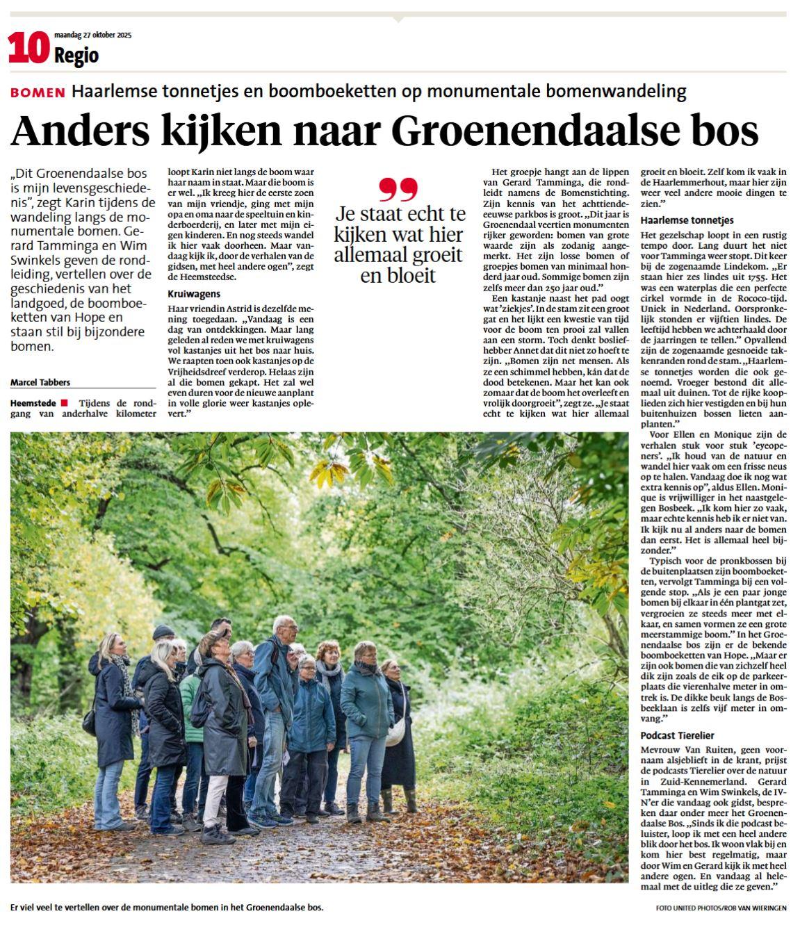 IVN in de krant: Groenendaalse Bos