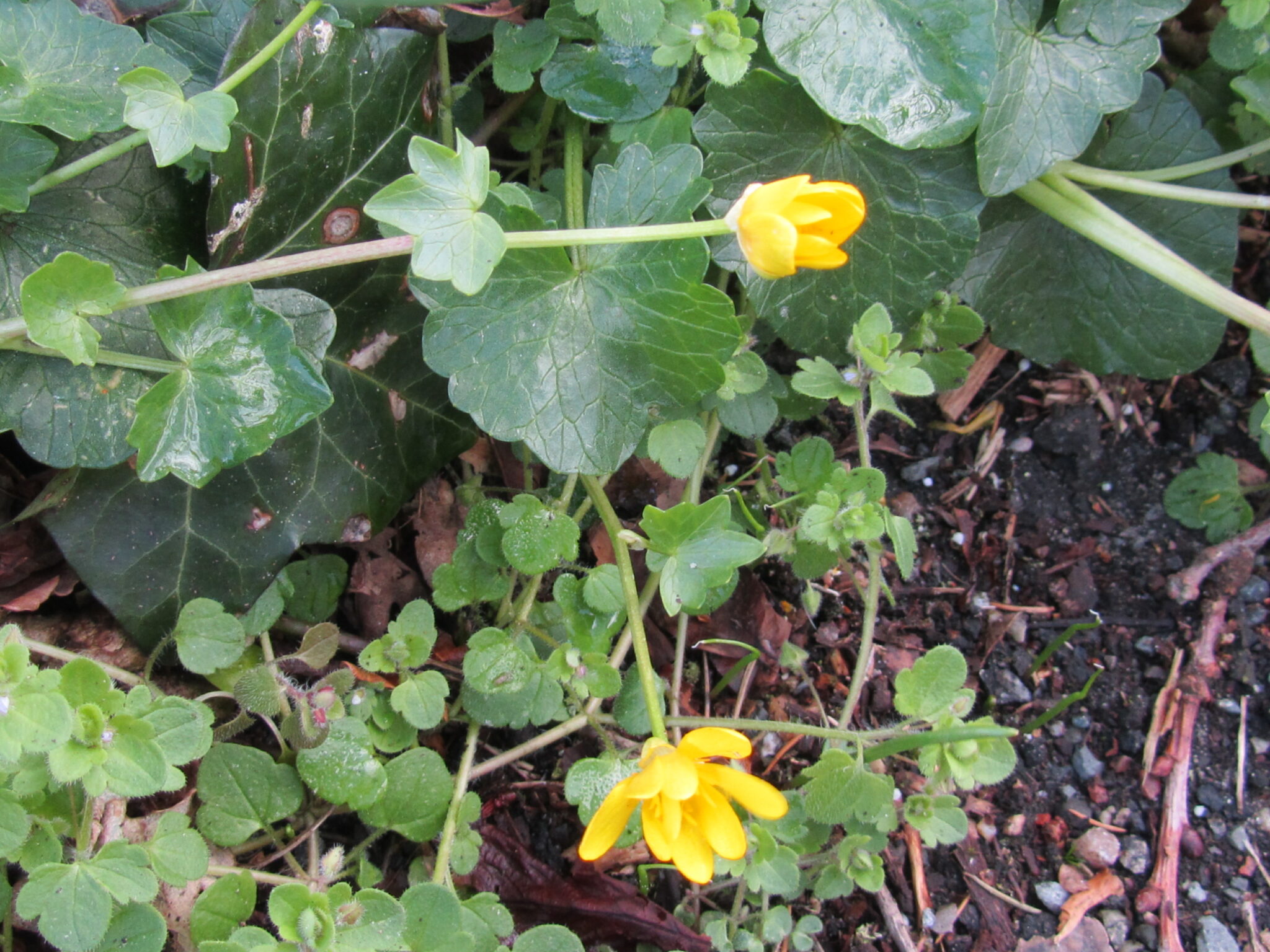 Er was al veel bloeiends te zien. Zo zagen we de gele bloemen van het speenkruid, verschillende soorten narcissen en de zeer zeldzame gele anemoon. Het wit van de sneeuwklokjes was bijna verdwenen, maar het wit van het armbloemig look kwam al om de hoek kijken. Het paars van de vingerhelmbloem en van de waarschijnlijk recent geplante sneeuwroem schitterde onder de nog kale bomen.