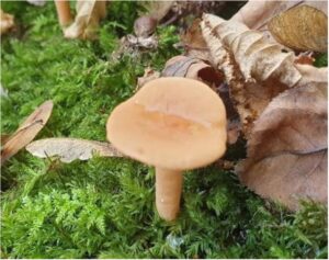 De levermelkzwam is bruiner van kleur en gaat een verbinding aan met naaldbomen. Deze zwam heb ik dit jaar veel gezien maar niet in de Zomp. De witte melk proeft eerst mild maar na enige tijd zeer scherp.