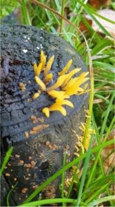 | oranje druppelzwam | Dacrymyces stillatus | trilzwam? | saprotoof | dood plantaardig materiaal. | C1 |