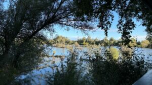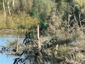 Vanuit de kijkhut was er ook een mooie havik te zien, die een tijd in een van de kale bomen op een van de eilandjes bleef zitten.