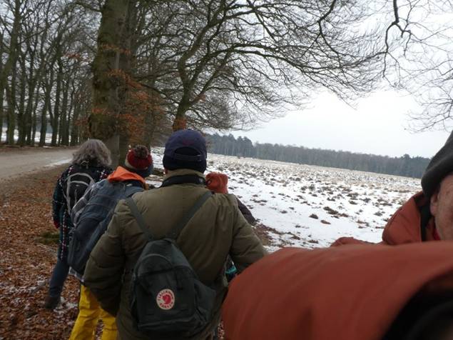| Met 11 deelnemers de kou getrotseerd en een wandeling door Planken Wambuis gemaakt. Het vroor ’s nachts -9 graden en toen wij er liepen was het nog steeds flink koud. De dag ervoor had het geregend op het sneeuwdek en dat maakte de paden moeilijk begaanbaar, hobbelig, glad en best wel vermoeiend. Twee van ons zijn uitgegleden, gelukkig zonder ernstige gevolgen, maar dat maakte wel dat we niet lopend konden uitkijken naar vogels. Dus we hebben nog vaker stilgestaan dan dat we normaal al doen. Ik krijg vaak te horen dat een wandeling met ons niet echt wandelen is. Nou, ik kan jullie verzekeren dat het nog langzamer kan: bij een gemiddelde broedvogeltelling lopen wij zo’n anderhalve kilometer per uur. ![]()
