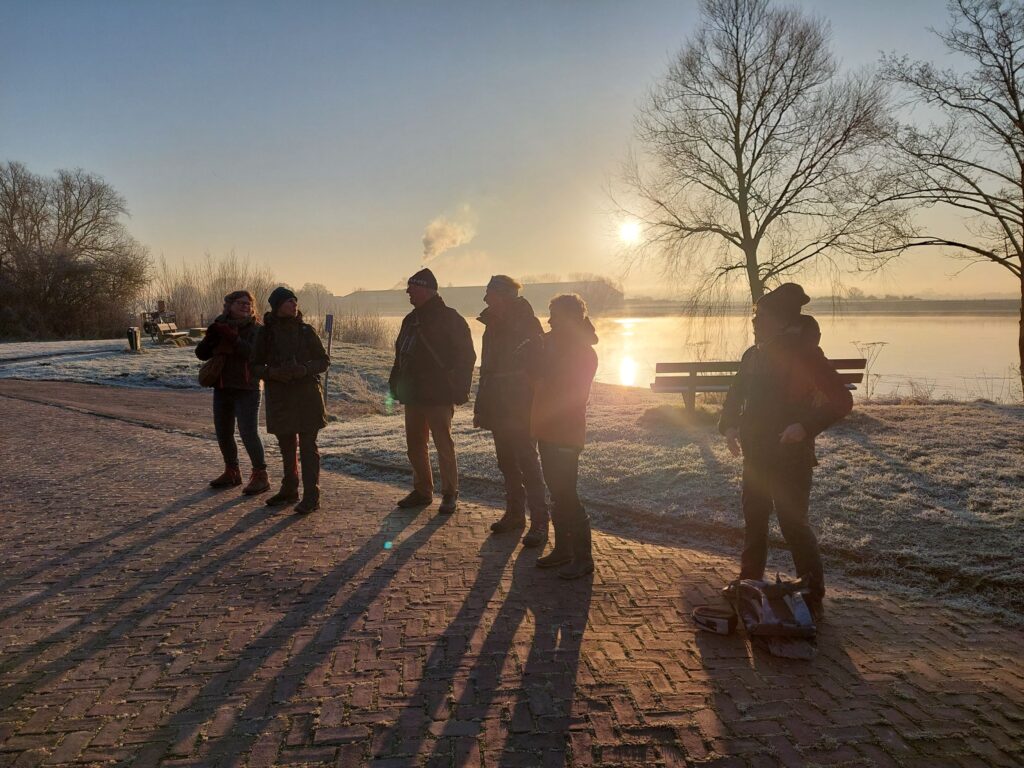 We waren met z’n zevenen, om negen uur ’s morgens bij de rivier. Een beetje mistig, damp steeg op uit de Rijn en de zon scheen er volop. In het bos naast de parkeerplaats van de Renkumse veerstoep zongen de vogels: een merel, koolmezen, pimpelmezen, spreeuwen, heerlijk de lente is in aantocht.