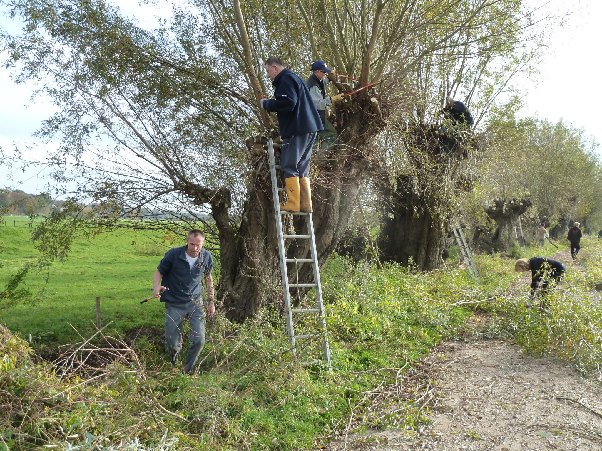 Van half september t/m maart steekt een flinke groep vrijwilligers in de gemeente Renkum tweewekelijks de handen uit de mouwen op zaterdag van 9.30 – 12.30 uur. We werken aan het behoud van heidegebieden, ‘plaggen’ voor de zandhagedis, schonen bospercelen op en helpen bij het onderhoud van een park of landgoed. Wilgen knotten in de Rosandepolder, het Heelsums beekdal en de Jufferswaard is daarnaast een belangrijke (èn geliefde) activiteit.