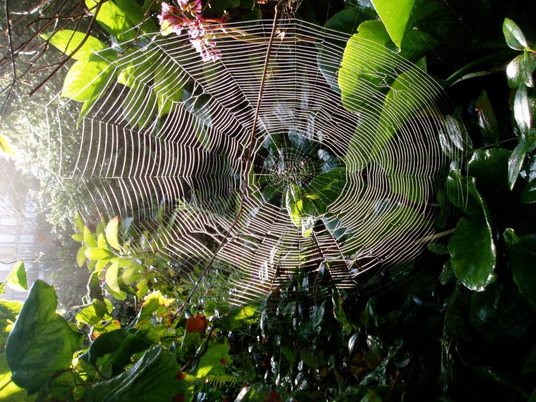 Soms heb je geluk om een spinnenweb met dauwdruppels te fotograferen.