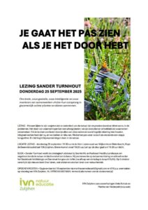 OPGEVEN/KOSTEN – Opgeven kan tot 23 september via marthavannederpelt@gmail.com en €10 p.p. overmaken op rekening van IVN Zutphen, NL19TRIO0338578099. Vermeld alle namen van de deelnemer(s)!