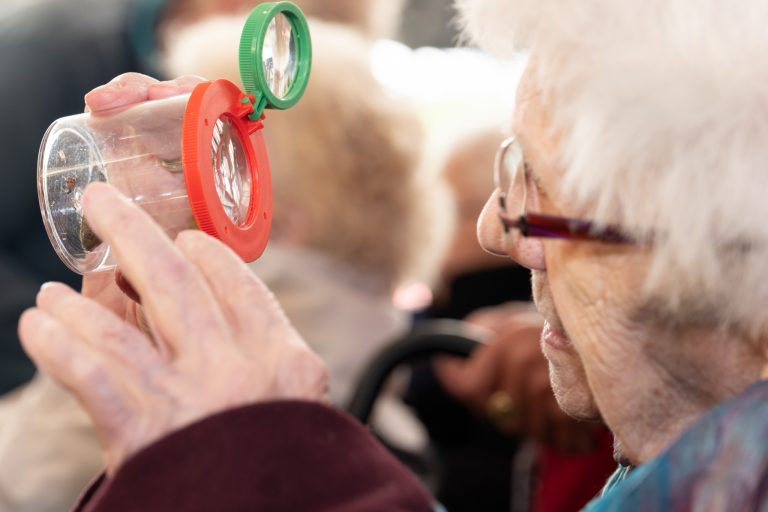 En, oh ja, we hadden ook iets te proeven bij ons: vlierbloesemlimonadesiroop. Je merkt wel, de Natuurkoffer kan gevuld worden met alles wat wij willen, alles waar deelnemers herinneringen aan hebben en blij van worden. Het is voor ons IVN’ers even schakelen: natuur naar binnen brengen. En het is vooral ook een creatief proces, wat en vooral hoe bied je de groep iets aan. Er zijn zoveel mogelijkheden, van natuurmaterialen uit het bos tot een film kijken van een wandeling ín dat bos. Hoe prikkel je alle zintuigen? We zijn nog te kort bezig om in te kunnen schatten wat mensen in die situatie zelf zouden willen. Het werken met de Natuurkoffer is ook voor ons zeer leerzaam. Heb je tips of ervaringen? Deel ze met ons. Er wordt op meer plaatsen in het land al langer gewerkt met de IVN-natuurkoffer, er wordt ook onderling uitgewisseld en er is landelijke en regionale ondersteuning voor. Voor ons is het nu nog klein, maar wie weet breidt het gebruik van de natuurkoffer zich uit en zijn er straks meer gidsen die dit boeiend vinden om te doen.
