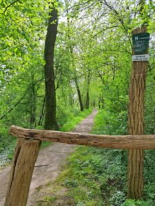 In het Appense Bos kruisten we ineens een bandijk, ander woord voor winterdijk die (nu) midden in het bos ligt. De IJssel is dichterbij dan je zou vermoeden. Even een stop bij Kikkerpoel de Rietmus, met de knoflookpad en de kamsalamander, volgens het bord.