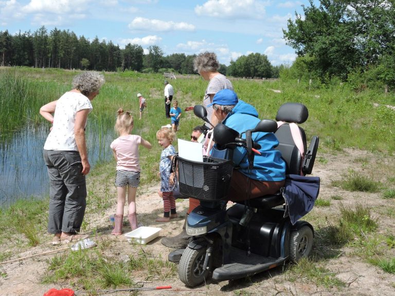 Het is zondagmiddag 12 juni en lekker weer met zon als er om 14.00 uur 9 kinderen en 7 volwassenen naar de gracht op de Gorsselse Heide komen om waterdiertjes te vangen. Sommige kinderen hebben een schepnetje mee, maar gelukkig zorgen de begeleiders van het IVN (Lucie, Jouck, Willemien en Klaske) voor materialen als netjes, loeppotjes, emmertjes, zoekkaarten enzovoort.