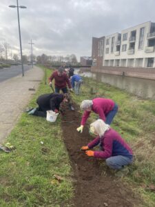 Afgelopen weekend zijn een groep vrijwilligers druk bezig geweest met het poten van bloembolletjes in de vlinderstrook langs de Canadasingel in de wijk Leesten. Een erg mooie uitbreiden van de vlindertuin die eerder dit jaar is aangelegd. Meer lezen? Leesten Wijkblog heeft een leuke artikel geschreven