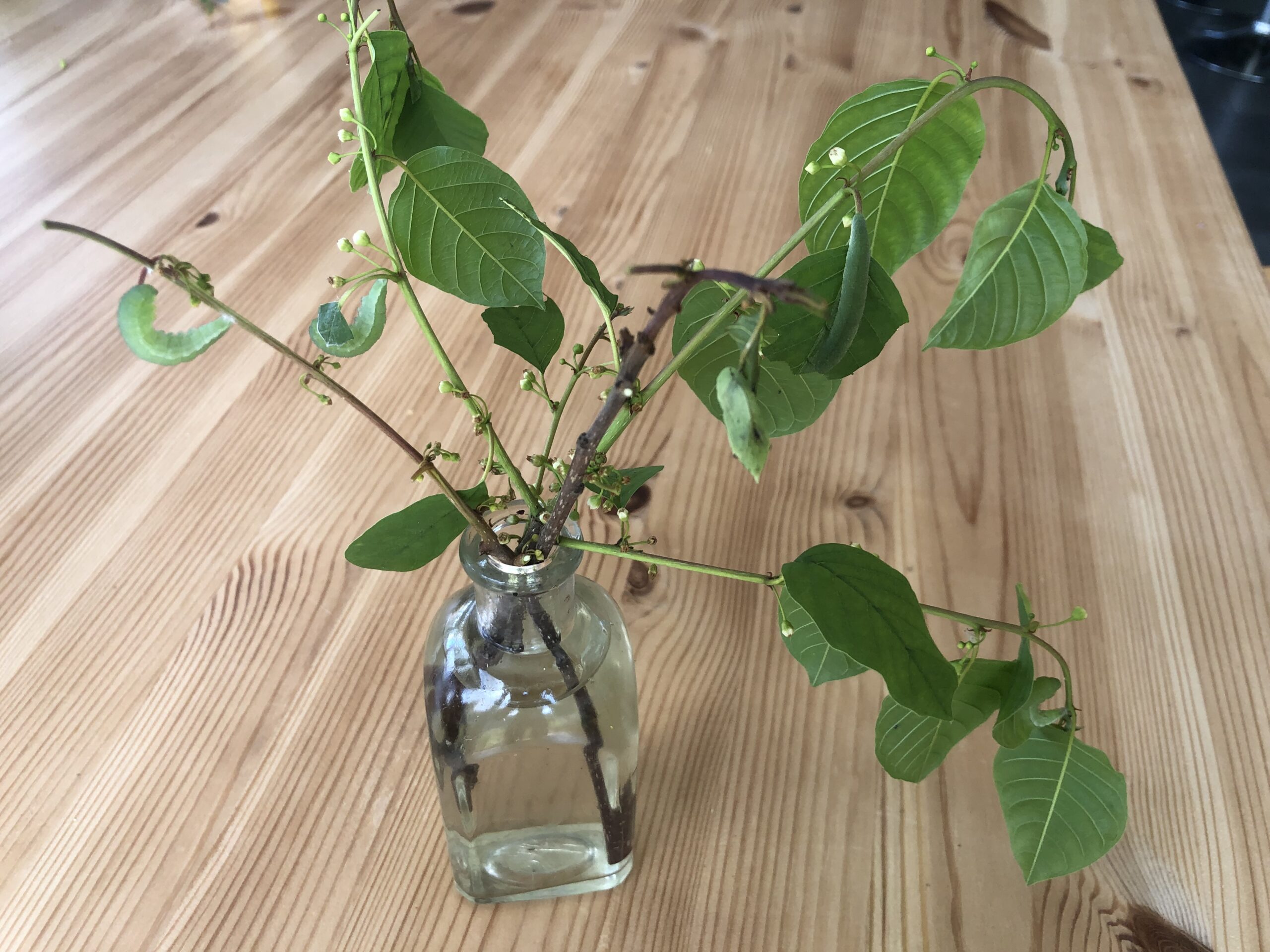 Er zijn al volop eitjes gelegd door de citroenvlinder op sporkehout die er pas 1jaar staat. Sporkehout of vuilboom ,is de beste struik voor insecten. De bloemetjes zijn piepklein maar worden continu bezocht door allerlei insecten.
