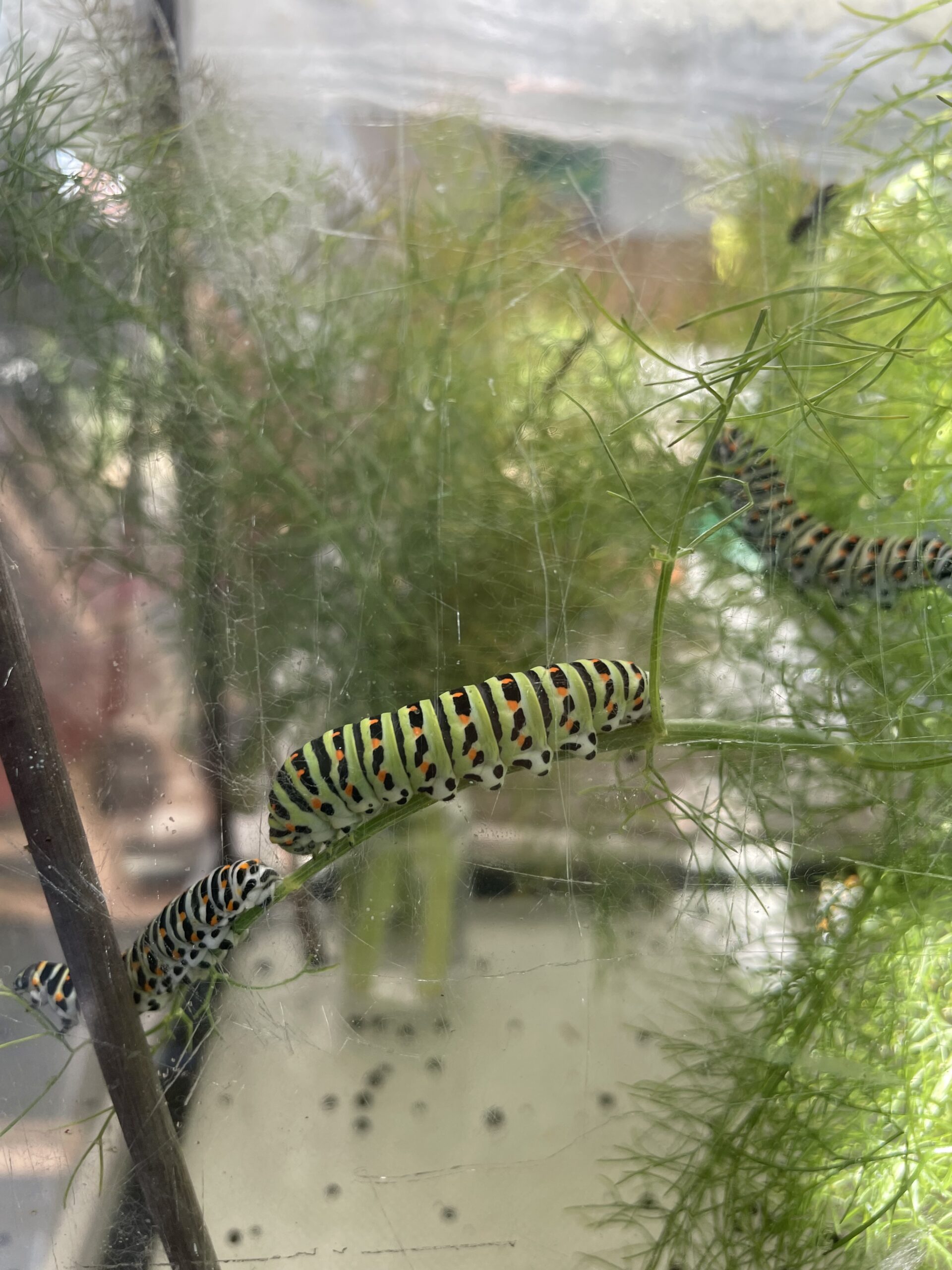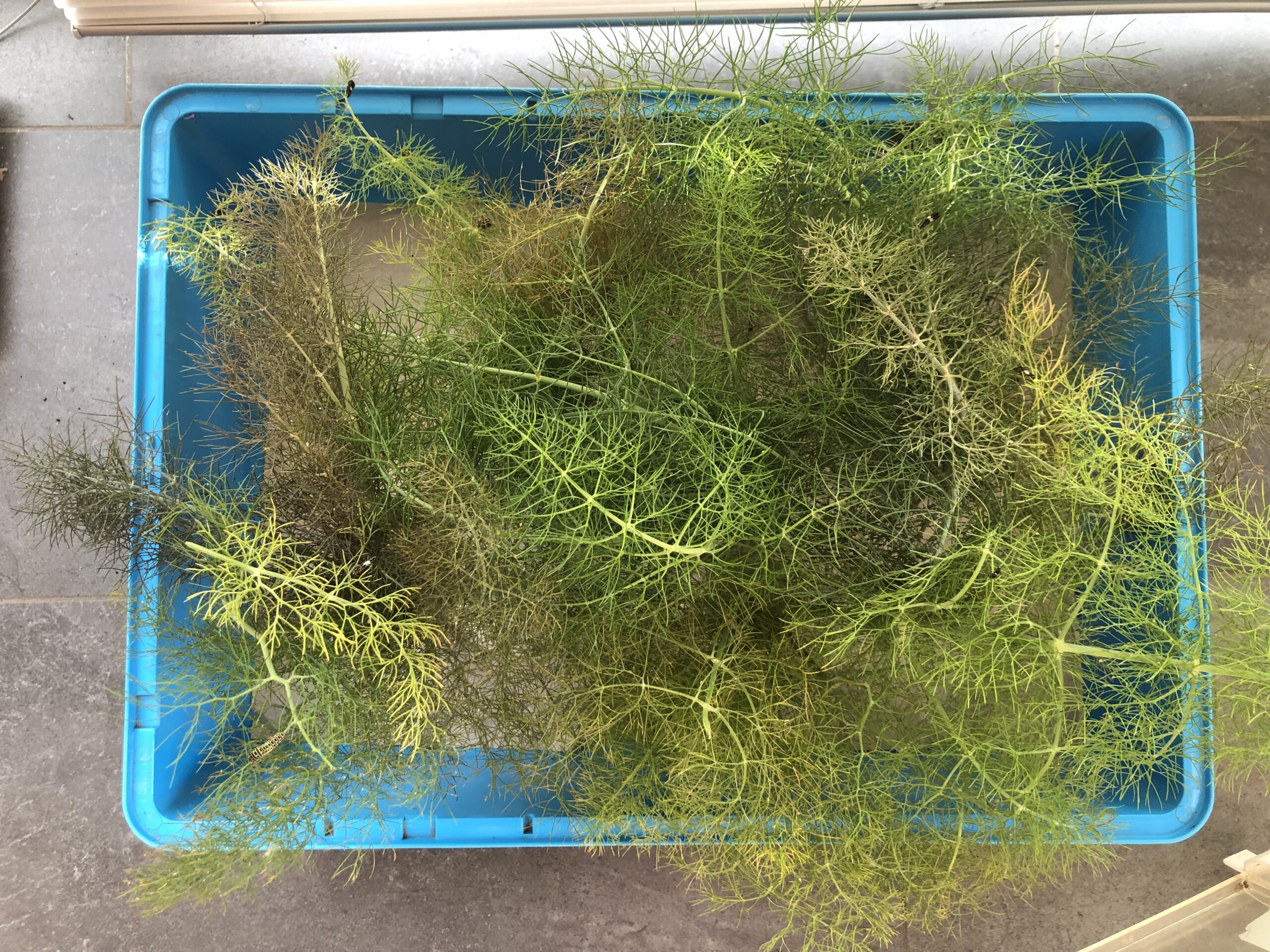 De waardplanten zijn : venkel, dille en wortel ( onbespoten uiteraard), de rupsen zijn goed te zien op onderstaande foto’s.