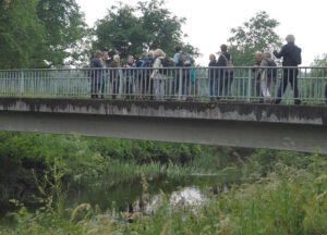 We waren met z’n twaalven. ’s Morgens werden we in een restaurant dicht bij ‘het Lankheet’ door enthousiaste bestuursleden van IVN Haaksbergen ontvangen met koffie en gebak. Officieel heeft het Lankheet eigen gidsen en een voorlichtingscentrum, maar in dit geval was er een gids aanwezig die bij beide organisaties werkzaam is. Hij wist veel te vertellen tijdens de wandeling over een stukje van het 600 hectare grote middeleeuwse landgoed. Het gebied is vooral bekend om zijn vloeiweiden, op de UNESCO-lijst van immaterieel erfgoed en de rietvelden, oorspronkelijk aangelegd voor waterzuivering. Maar er is méér, zoals de Buurserbeek, die op plekken weer mag meanderen en flow-forms die we ontdekten in een beek. Ik waag me niet aan jaartallen en andere feiten, die zijn allemaal te vinden op www.degroenewaaier.nl, hier vind je ook beschrijvingen van wandelingen.