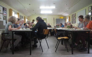 Wij hebben er genoten van een heerlijke lunch, geheel verzorgd en geregeld door leden van de afdeling, met soep, broodjes en Twentse krentenwegge. Een fantastische service en liefdevol gepresenteerd! Tijdens het gezamenlijke eten vertelden de verschillende coördinatoren over hun werkgroepen, waarna Annemiek een beeld schetste van onze Zutphense afdeling en de Haaksbergers uitnodigde ook eens bij ons te komen kijken. Na afloop van de middagwandeling bood zij hen o.a. een boek over de IJssel aan, “om zich alvast wat in te lezen”. Uit een reactie die ik inmiddels kreeg, blijkt dat dit voorbereidende werk al begonnen is.