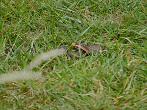 Met een “Kijk hier rechts eens, een Japanse gember in bloei!” werden we naar de rand van het pad geroepen, waarna twee seconden later: “nee, kijk daar, een rode wouw!” Wat een verrassingen, nadat we ook al hadden staan kijken naar een adder, die zich van haar velletje aan het ontdoen was. Dit hadden de meesten van ons nog nooit in het echt zien gebeuren.