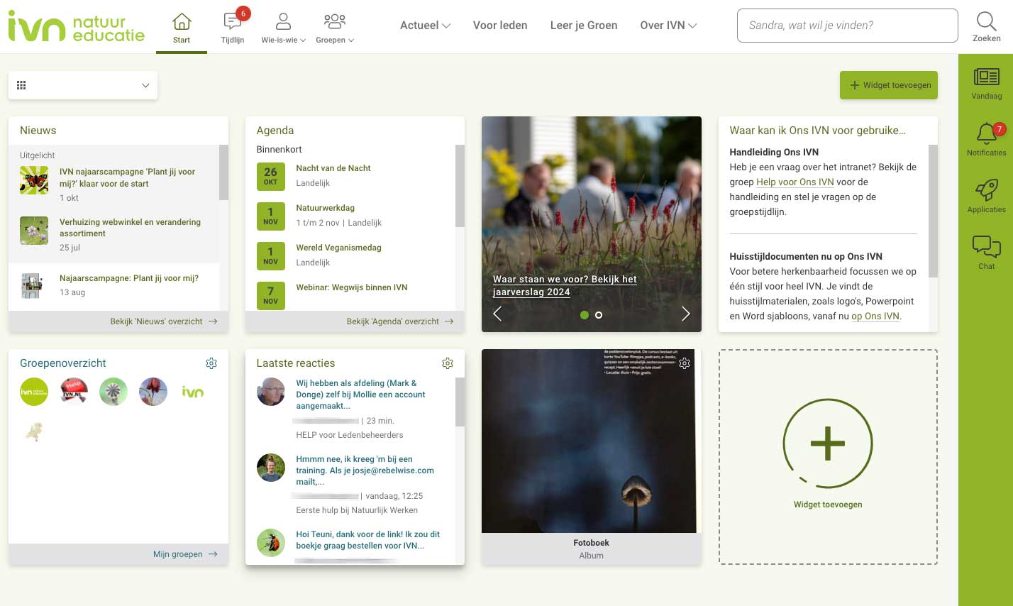 Ons IVN is het intranet voor leden en medewerkers van IVN. Je vindt er bijvoorbeeld informatie over landelijke werkgroepen, trainingen en cursussen.