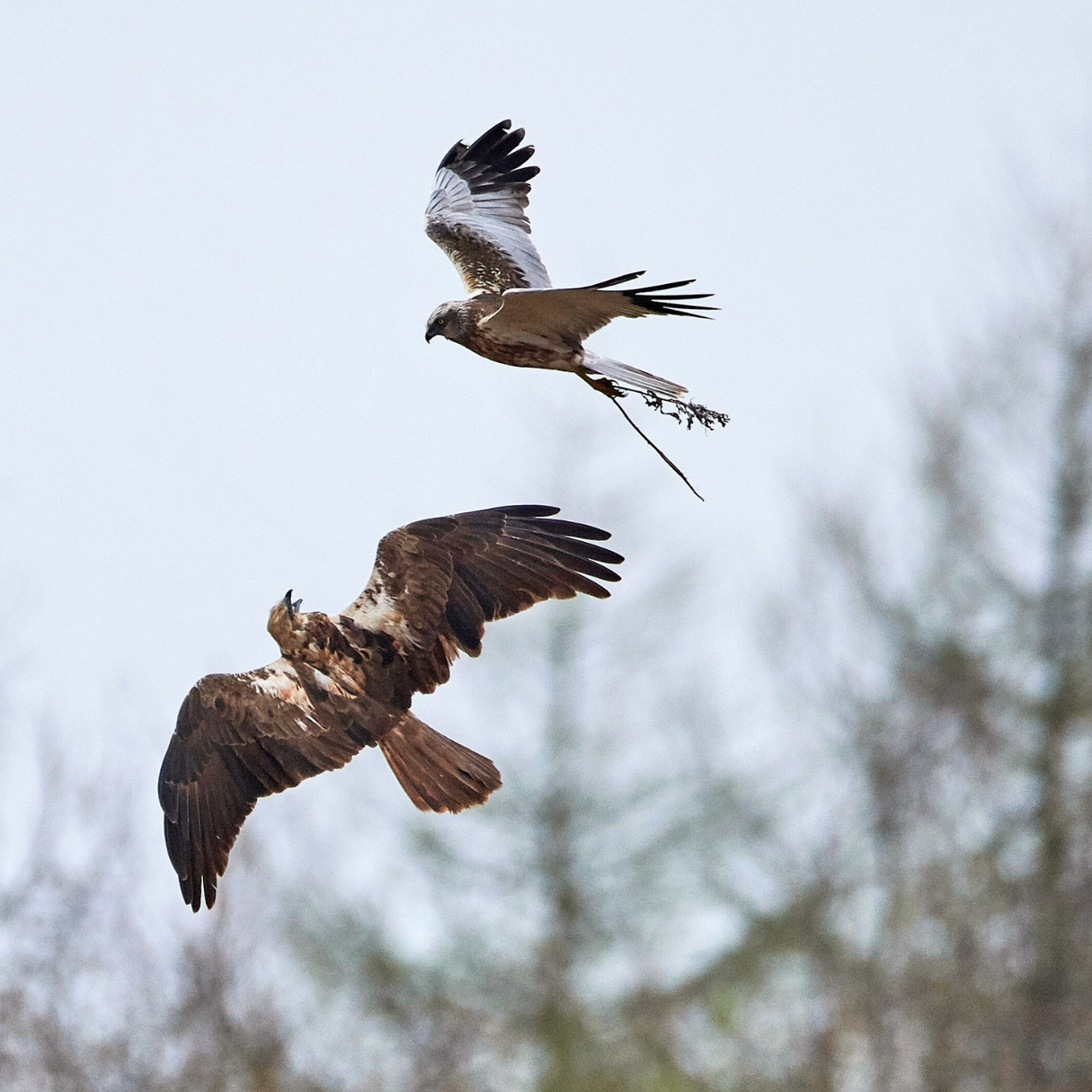 Bij kiekendieven en enkele andere roofvogels vindt de prooioverdracht midden in de lucht plaats: het vrouwtje vliegt omhoog en het mannetje tegemoet, rolt op haar rug en plukt de prooi uit zijn klauwen of vangt de prooi op als het mannetje hem laat vallen.