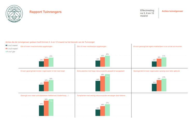 - Uit de enquêtes blijkt dat 95% van de tuineigenaren binnen de 3 maanden met het advies aan de slag gaat.