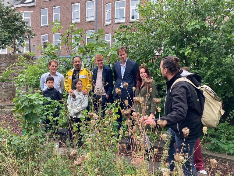 Geen woorden maar daden. Als het aan meester Robert van de Oranjeschool in Rotterdam ligt, spelen alle kinderen in Nederland straks op net zo’n mooi groen schoolplein als de leerlingen van zijn school. Hij zette zijn schouders eronder en toonde vrijdag samen met leerlingen Miral en Husseyin uit groep 8 vol trots hun groene schoolplein aan de aanwezige politici. Een plein, waar de kinderen kunnen rennen, klimmen en ook nog eens in de moestuin aan de slag kunnen. In Rotterdam wordt er inmiddels door wethouder Vincent Karremans (VVD), ook aanwezig, volop werk gemaakt van de vergroening van schoolpleinen. Op veel andere plekken in het land hebben de schoolpleinen echter nog flink wat aandacht nodig. Reden voor IVN om politici van PvdA, BBB en Volt, die op de uitnodiging in gingen, met hun eigen ogen te laten zien wat zo’n natuurrijk plein voor de leerlingen betekent.