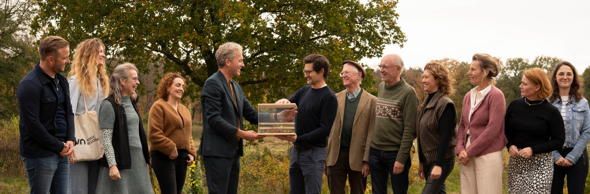 Op 29 oktober 2025 is de samenwerking officieel bekrachtigd door Jan Dijstelbloem en Chris Schreve, directeur van Natuurbegraafplaatsen Van Waarde. Jan Dijstelbloem overhandigde een zogeheten verwonderingskast: een houten kast waarin bijzondere natuurvondsten zoals kastanjes, bladeren of veren kunnen worden verzameld. Een bijzonder moment dat symbool staat voor de gezamenlijke inzet voor natuur, educatie en verbinding. Chris Schreve: ‘Wij geloven dat natuurbegraafplaatsen niet alleen rust en bezinning brengen, maar ook een bron van kennis en inspiratie kunnen zijn. Samen met IVN bouwen we aan die toekomst’.