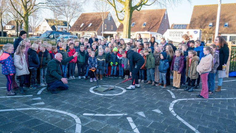 CBS De Arendsvleugel in Ruinerwold is de eerste school in Drenthe waar de schop in de grond gaat om plek te maken voor een groene buitenruimte die de fantasie prikkelt en bewegen stimuleert. Mede mogelijk gemaakt door het project Schoolpleinen Revolutie Drenthe. Silvan Burgwal en Sarah Frans hadden de eer om de eerste tegels te verwijderen. “Twee jaar geleden droomde de schoolpleincommissie, bestaande uit ouders, directeur en leerkrachten, over het omtoveren van het grijze schoolplein tot een groene, schaduwrijke en uitdagende omgeving om te spelen, te leren en te bewegen,” vertelt directeur Jaap Veltman. “Fantastisch dat dit nu werkelijkheid wordt en dat de eerste schop in de grond kan.”