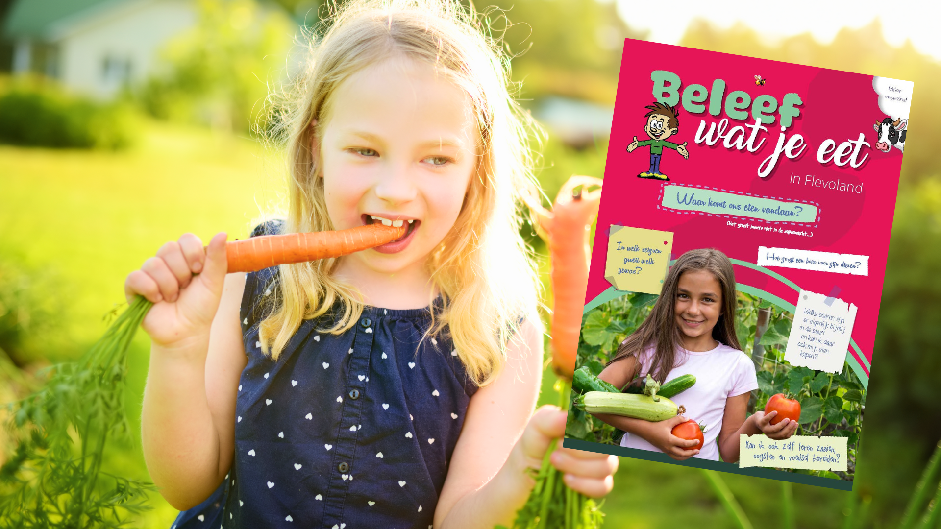 Waar komt ons voedsel eigenlijk vandaan? Uit de supermarkt? Daar kopen we het, maar welke stappen daaraan vooraf gaan, dat is bij veel kinderen niet bekend. In de provincie Flevoland wordt veel eten geproduceerd. Akkerbouwers, veehouders, fruittelers en vissers werken dagelijks hard, zodat wij een lekker maaltje op ons bord hebben. Om boer en kind dichterbij elkaar te brengen heeft DuurzaamDoor het magazine “Beleef wat je eet” ontwikkeld voor basisschoolkinderen. Leerkrachten kunnen gratis exemplaren aanvragen tegen vergoeding van de verzendkosten.