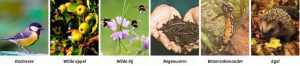 Zes Tuinhelden doen mee aan de verkiezing: regenworm, wilde appel, koolmees, egel, wilde bij en watersalamander. Stem nu op jouw favoriete Tuinheld van Dronten en help mee aan een groenere en biodiverse omgeving. Van 22 mei tot en met 1 juli kan er gestemd worden in het Huis van de Gemeente Dronten of online op www.dronten.nl/tuinhelden.