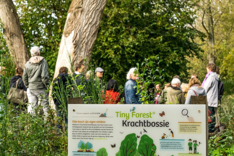 “Een Tiny Forest is een grote krachtpatser in de strijd tegen hittestress in de stad.” Dat stellen onderzoekers van de universiteit van Wageningen. De temperatuur in zo’n klein bosje is fors lager dan de temperatuur op straat. Het onderzoek is onder meer gedaan bij een bosje in Almere Poort.Tiny Forest Odytrees is de naam van het bosje in het Cascadepark in Almere Poort. Dit kleine stukje natuurgroen is aangeplant in november 2017. Het begon met kleine boompjes met een lengte van zo’n 80 centimeter. “De meesten staan denk ik op een metertje of vijf of zes, dus dat is een metertje per jaar dat het bos toch groeit,” zegt Daan Bleichrodt van IVN Natuureducatie.Tot twintig graden koelerBleichrodt is de initiatiefnemer van de Tiny Forests. Inmiddels staan er tien in Almere. Landelijk gaat het om zo’n 300 Tiny Forests. In de afgelopen jaren heeft de Wageningen Universiteit, samen met IVN Natuureducatie, onderzoek gedaan naar het effect van deze groene gebieden. “Op een warme tropische dag kan het in zo’n bos twintig graden koeler zijn dan de temperatuur op straat”, zegt Bleichrodt. Ze meten dan de temperatuur van de bodem. “Qua gevoelstemperatuur merk je dat ook als je het bosje binnenloopt. Dan voelt het gelijk een stuk koeler. Het komt niet alleen door de schaduw, maar ook omdat bomen water verdampen. Die waterdamp koelt de omgeving weer af.”