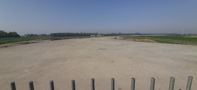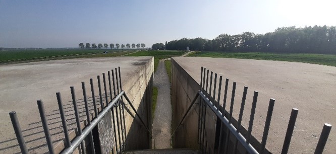 De tweede dag was de route van Aqua Centrum Bremerbergse Hoek naar Camping de Hinde, Dronten met een afstand van 21,5 km. Het was vandaag heel vroeg al vrij warm en de etappe behoorlijk lang. Daarom besloot ik het stuk route langs de achterkant van attractiepark Walibi over te slaan en dus af te snijden. Misschien niet sportief maar ik moet ook aan mezelf denken, ik ben ook de jongste niet meer. Wél ben ik de trap opgegaan bij het landartproject Artwork Riff en dan zie je dit: