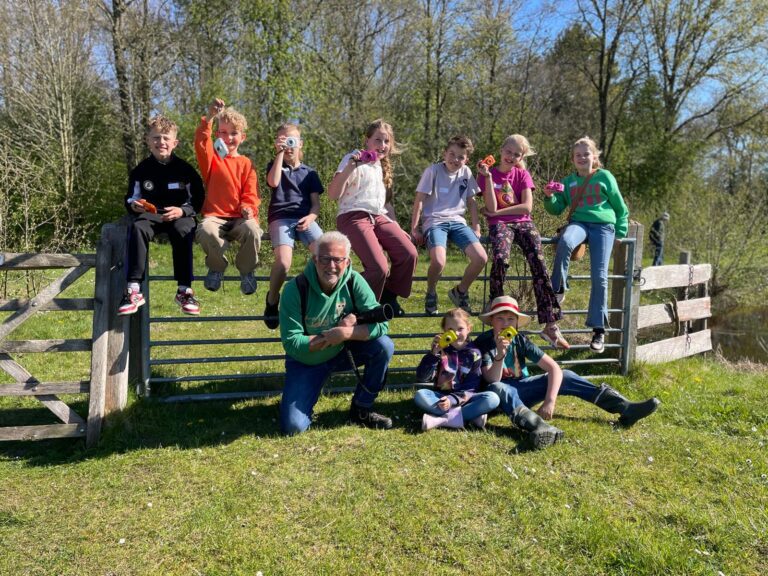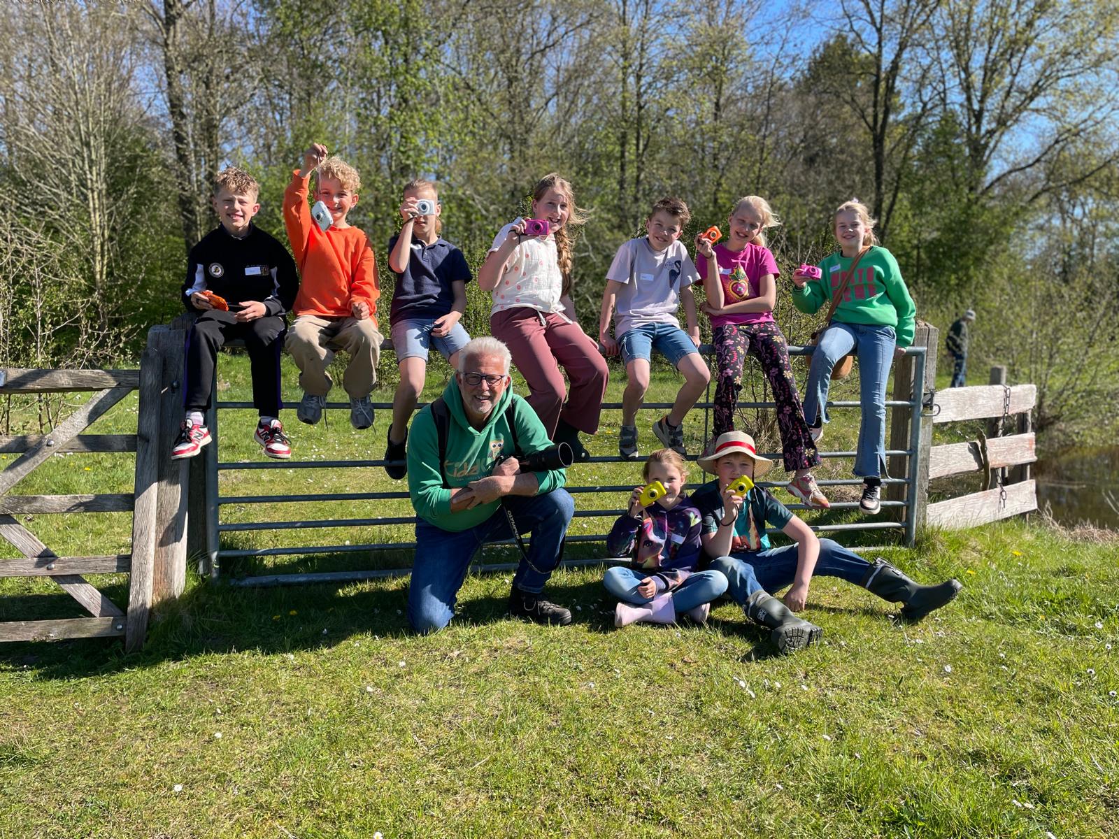 De kinderambassadeurs waren dolenthousiast en zetten van alles op de foto: bloeiende paardenbloemen, nog krullende, jonge varens, bomen vanaf de grond. Zelfs libellen, vlinders en torretjes wisten de kinderen op de gevoelige plaat vast te leggen. En als kers op de taart kwam er een ringslang langsgezwommen!