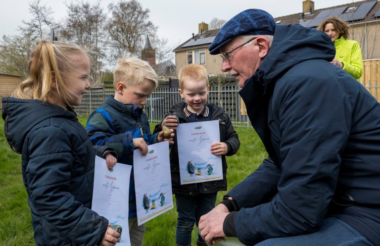 Alle basisscholen in gemeente Waadhoeke krijgen dit jaar het Gouden Boekje Sipke vindt een kievitsei cadeau. Het boekje gaat over een kleine spitsmuis, die samen met zijn opa eieren gaat zoeken in het veld. Ze banjeren door de Friese velden met een oude pet op het hoofd en een verrekijker in de hand. Opa gooit Sipke over de sloot en hoe het dan verder afloopt? Wethouder Jan Dijkstra las voor uit het boekje en vertelde over de kievit: “Heb je wel eens van de kievit gehoord? De kievit roept zijn eigen naam “kieuwit kieuwit”. Je kunt de kievit herkennen aan zijn kuif op zijn kop.” Ook leerden de kinderen over de eieren van de kievit en over zijn vriendjes, zoals de scholekster (strânljip), grutto (skries) en tureluur (tsjirk).