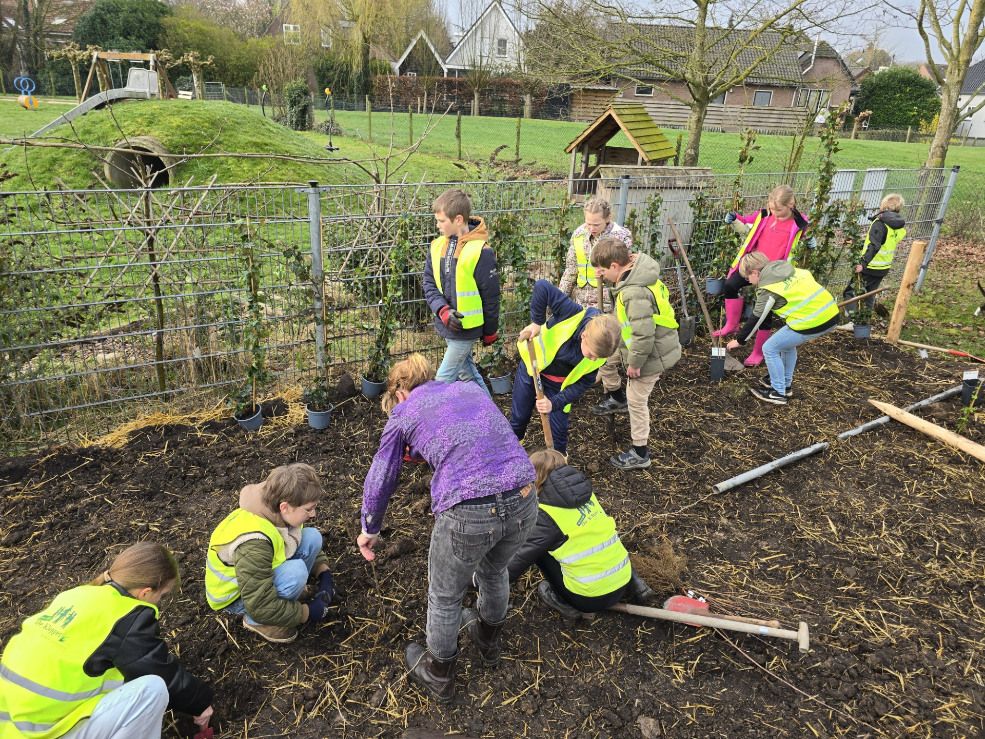Het hele bosje, ruim 600 boompjes, ging afgelopen februari in slechts twee dagen de grond in. Een dag met hulp van een schoolklas van de basisschool en een dag met buurtbewoners.