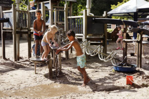 Als familiecamping heeft de Wildhoeve ook een waterspeeltuin, een groot binnen-en buitenzwembad. Ook daarin wil de familie Zweers zo natuurlijk mogelijk werken. “Voor ons binnenbad zetten we zout om in chloor.” In de winterperiode is het natuurlijk rustig in de zwembaden, en melden zich allerlei diersoorten. “In het bad zien we kikkers en salamanders verschijnen. Ik zag zelfs een keer een ringslang!” Met emmertjes en vangnetjes worden de diertjes zorgvuldig weggevangen en in de waterspeeltuin gezet. “Daar is het aantal amfibieën echt enorm toegenomen de laatste jaren”, vertelt Bart trots.