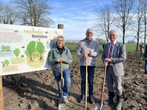De Bolster krijgt het Tiny Forest cadeau van natuurliefhebbers Mirjam en Fred Hakvoort. ‘We moeten de natuur weer veel meer gaan waarderen. Door samenwerking met De Bolster investeren we in de volgende generatie. Hier kunnen de leerlingen straks ontspannen, hun geheimen achterlaten en bewust worden van het belang en de schoonheid van de natuur’, aldus Fred Hakvoort.