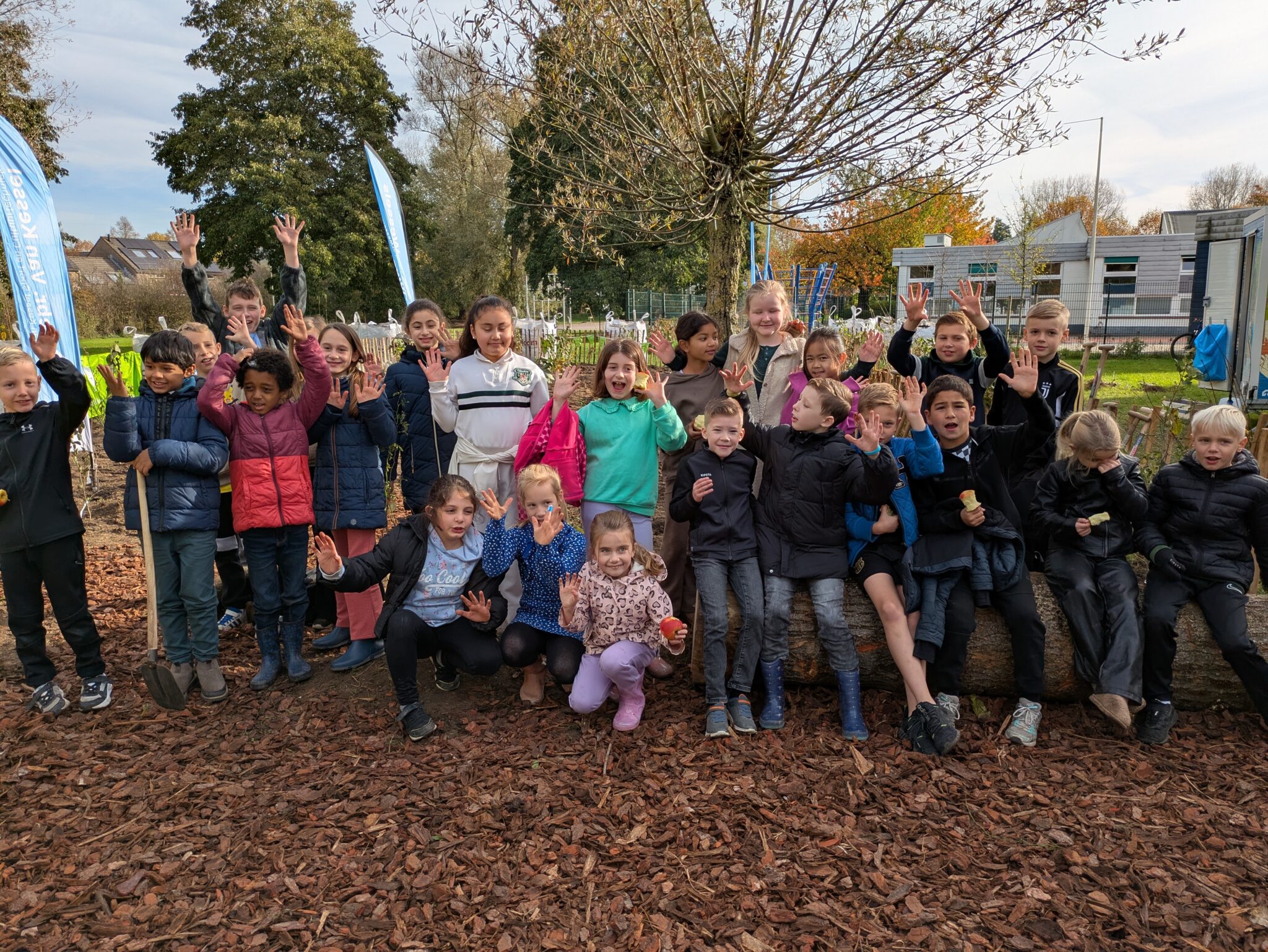 Op deze mooie feestelijke plantdag gingen de leerlingen vol enthousiasme aan de slag met het planten van bomen en struiken. ‘Ik vind het erg leuk om bomen te planten en dan straks te kunnen kijken welke beestjes er allemaal in het bos gaan komen’, vertelt Jenna uit groep 6.