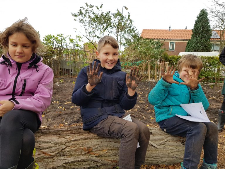 In kleine groepjes zijn de leerlingen daarna aan de slag gegaan met het planten van verschillende soorten: honderden boompjes en struiken zijn in de aarde gezet. Tijdens de aanleg spatte hun enthousiasme en betrokkenheid er vanaf. “We hebben van alles geplant; wilde peer, zwarte bes, vlierbes”, aldus Onne uit groep 7.