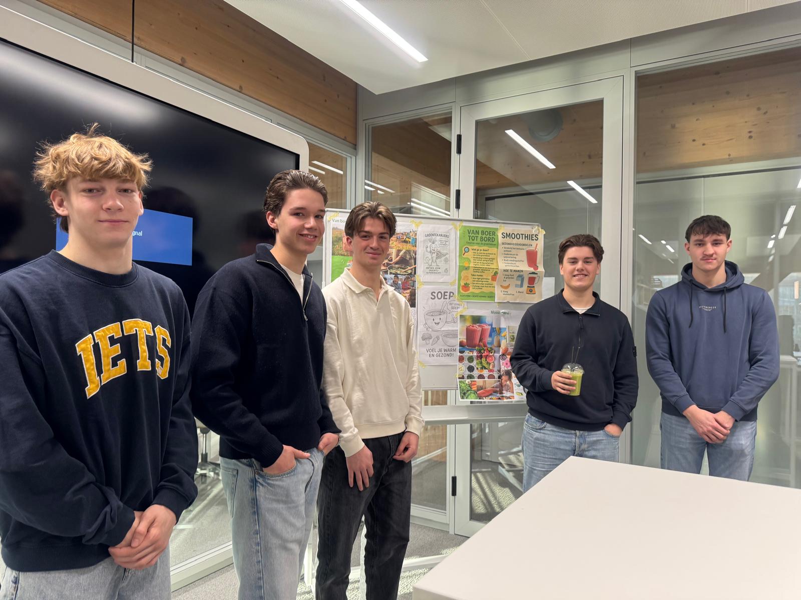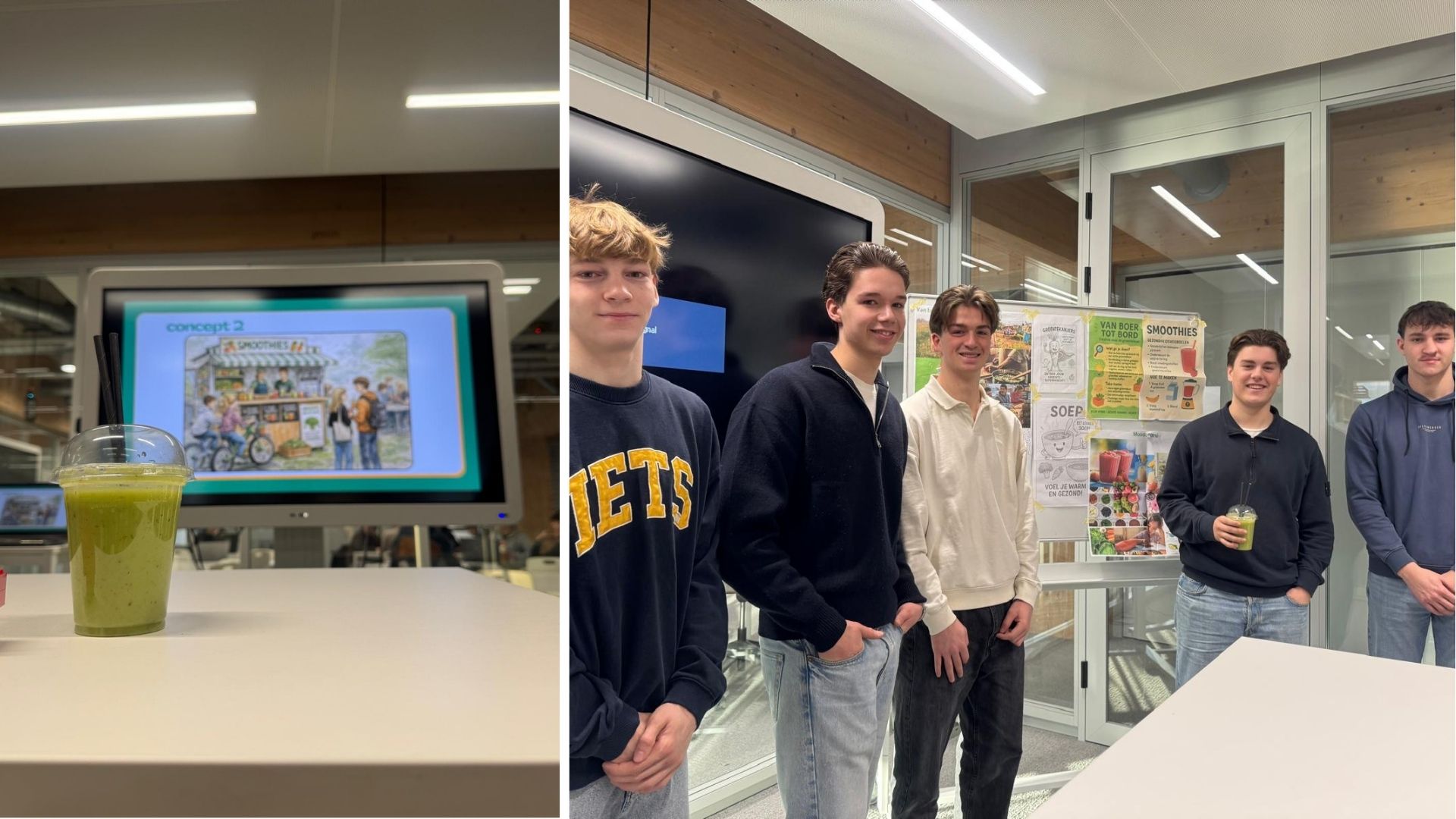 Over de uitvoering was goed nagedacht. De smoothiebar moet ruim vóór de ingang van de kantine staan. ‘Zo bereik je leerlingen voordat ze worden verleid door de geuren van kantinesnacks,’ aldus de groep. Receptenposters en manden met verse ingrediënten laten zien wat er in de smoothies zit, zodat leerlingen bewust worden van wat ze drinken. En er zit nog een speels element in: ‘Bij de smoothiebar kom je ook in beweging: met een fiets kun je zelf je smoothie mixen!’