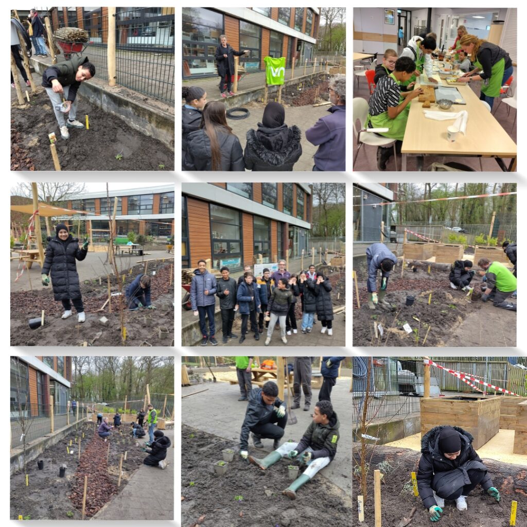 Amsterdam-Noord is een voedselbosje rijker. Vandaag was de plantdag van het Voedselbosje op het schoolplein bij Kolom Praktijkcollege Noord! De leerlingen plantten met elkaar 30 verschillende eetbare soorten. Ook maakten ze heerlijke appel-amandelkoekjes en fruitsmoothies met ingrediënten die ze in de toekomst zelf kunnen oogsten.